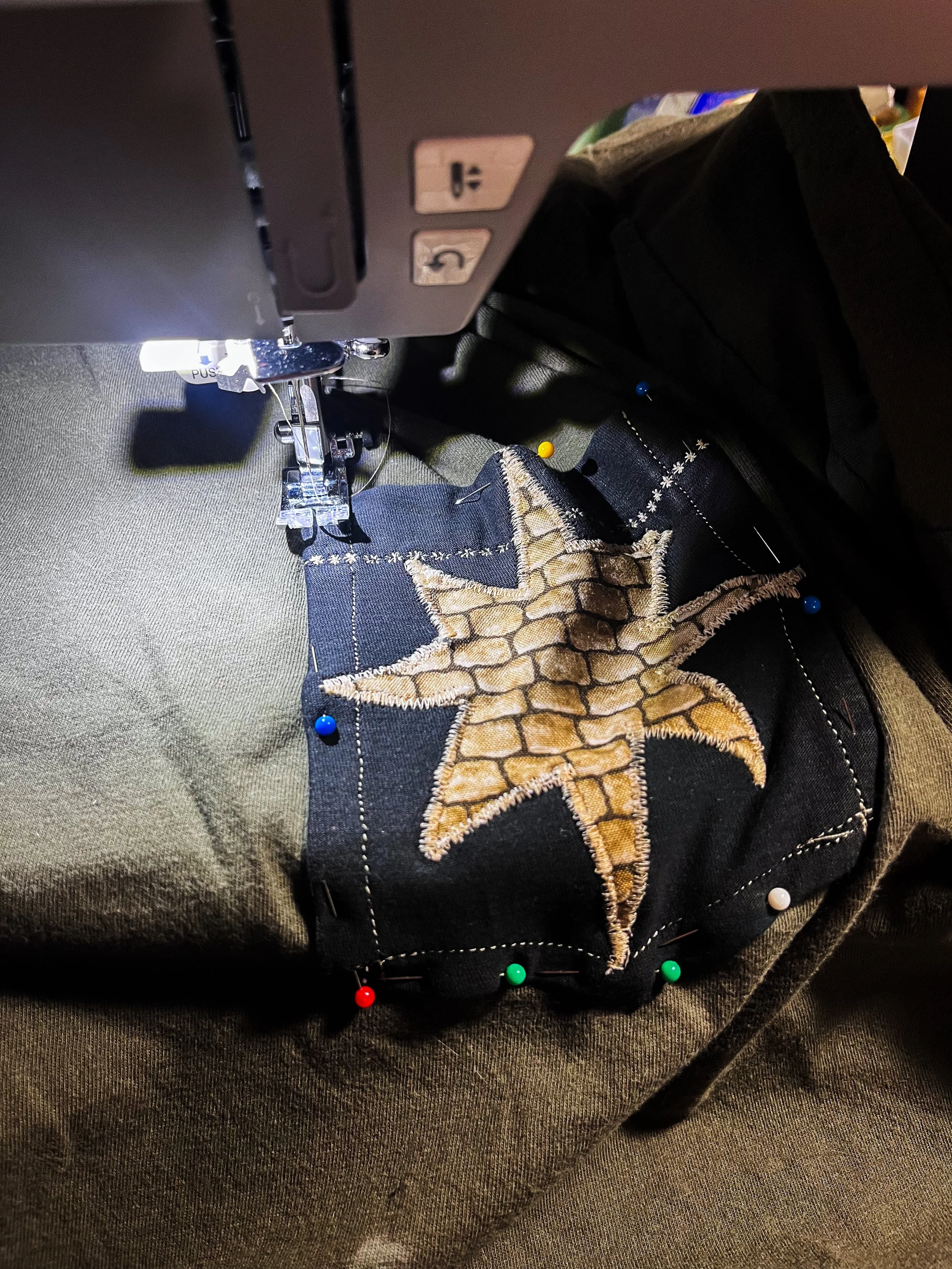 TEXTiLES “STARRY-EYED” december 2025 this is my first ever piece of textile art! it is absolutely not perfect by any means, but i love it so much and it means a lot to me as my first ever big sewing project! <3